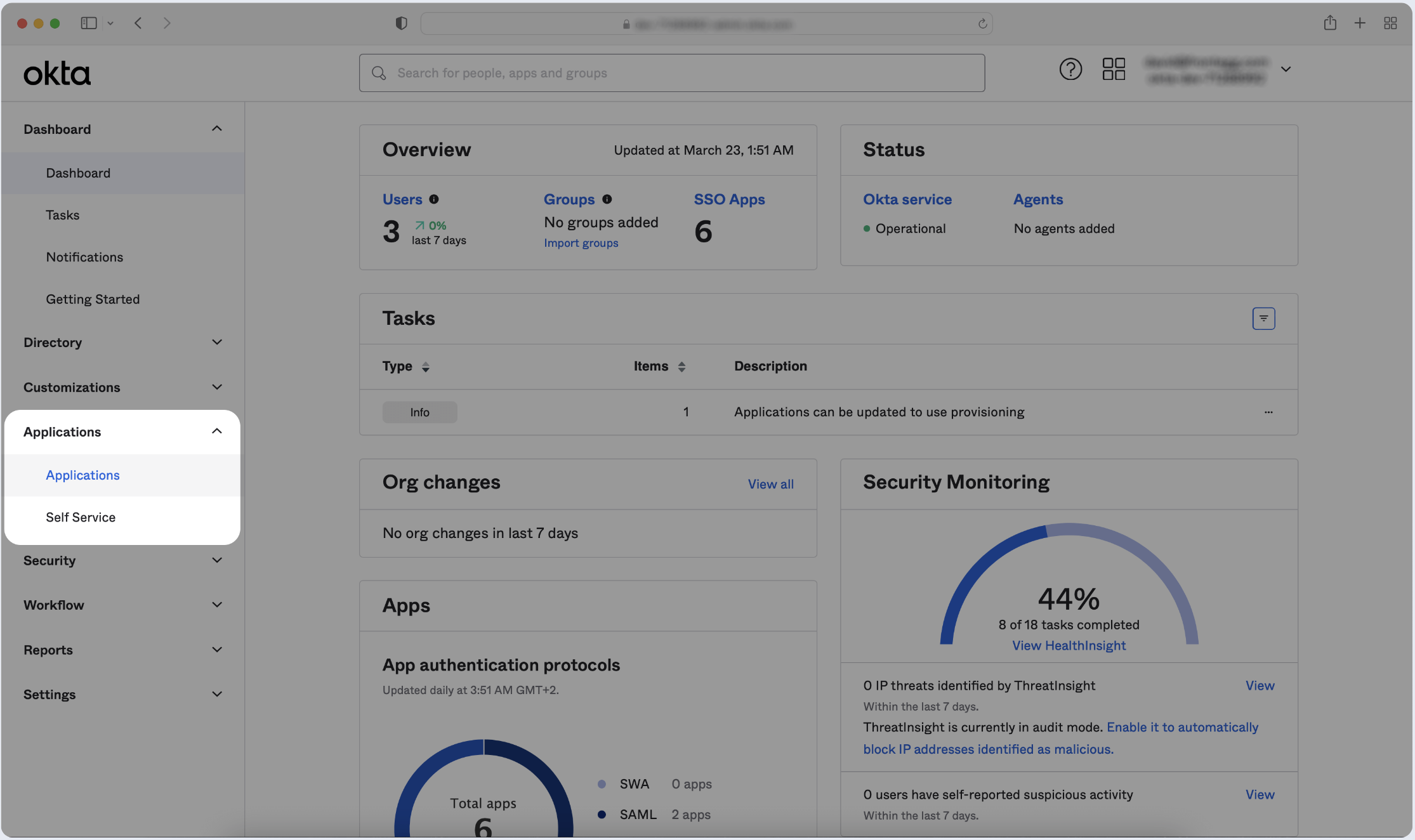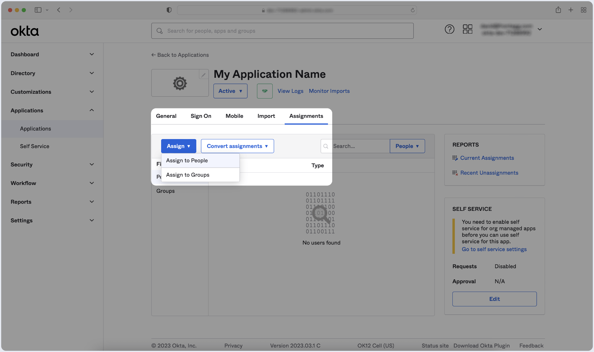 Log in to your Okta Application Dashboard and click Applications in the sidebar.