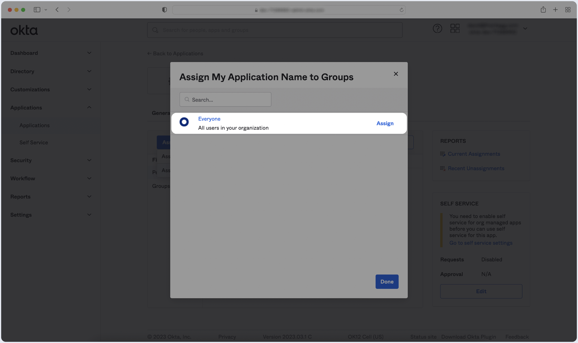 Locate the specific group(s) you wish to assign to the app and click Assign next to each of them. Once finished, click Done.
