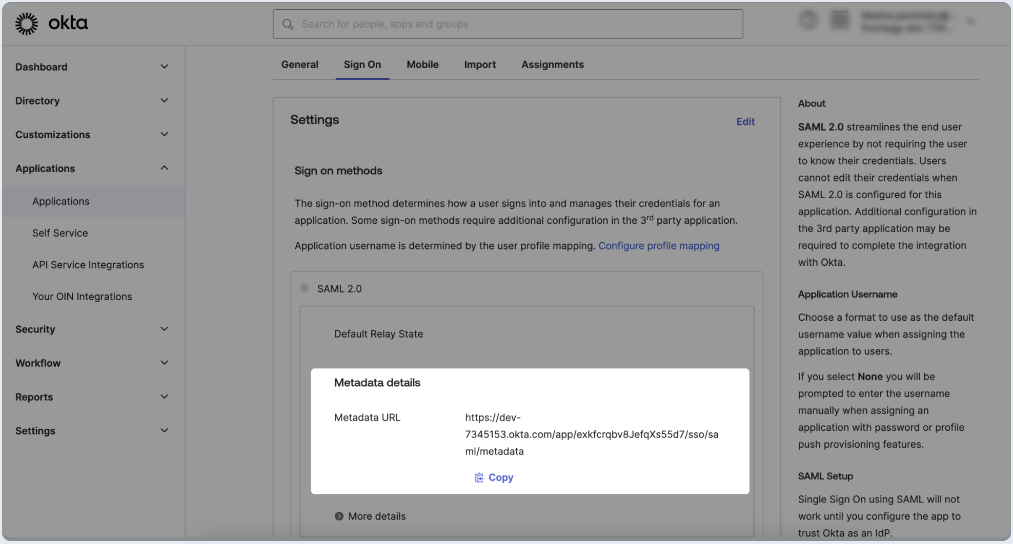 - Click on the Sign On tab of the SAML app you just created.