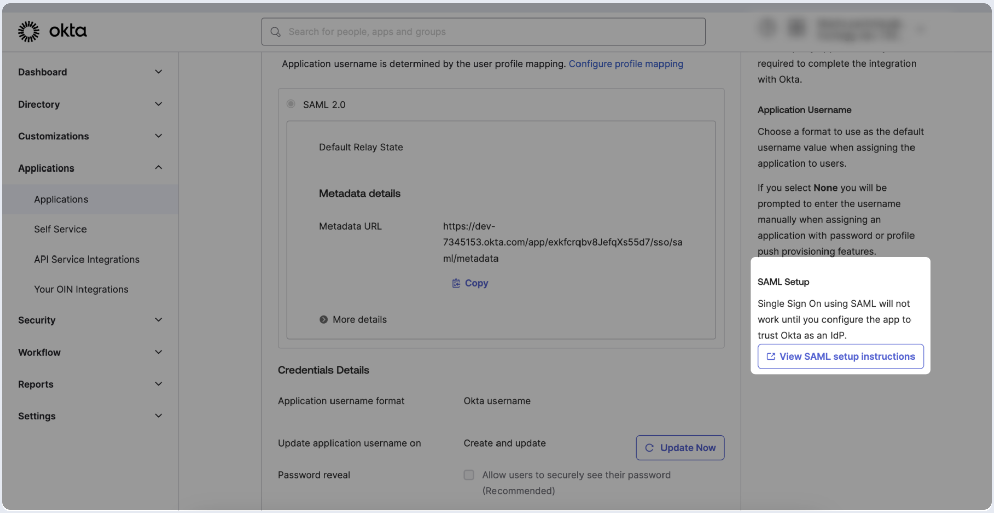 - Click on View SAML setup instructions.