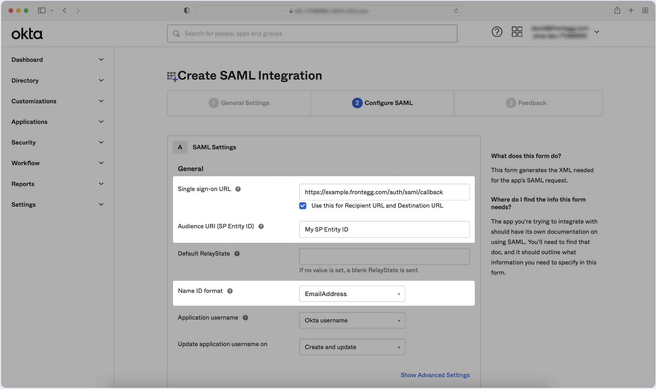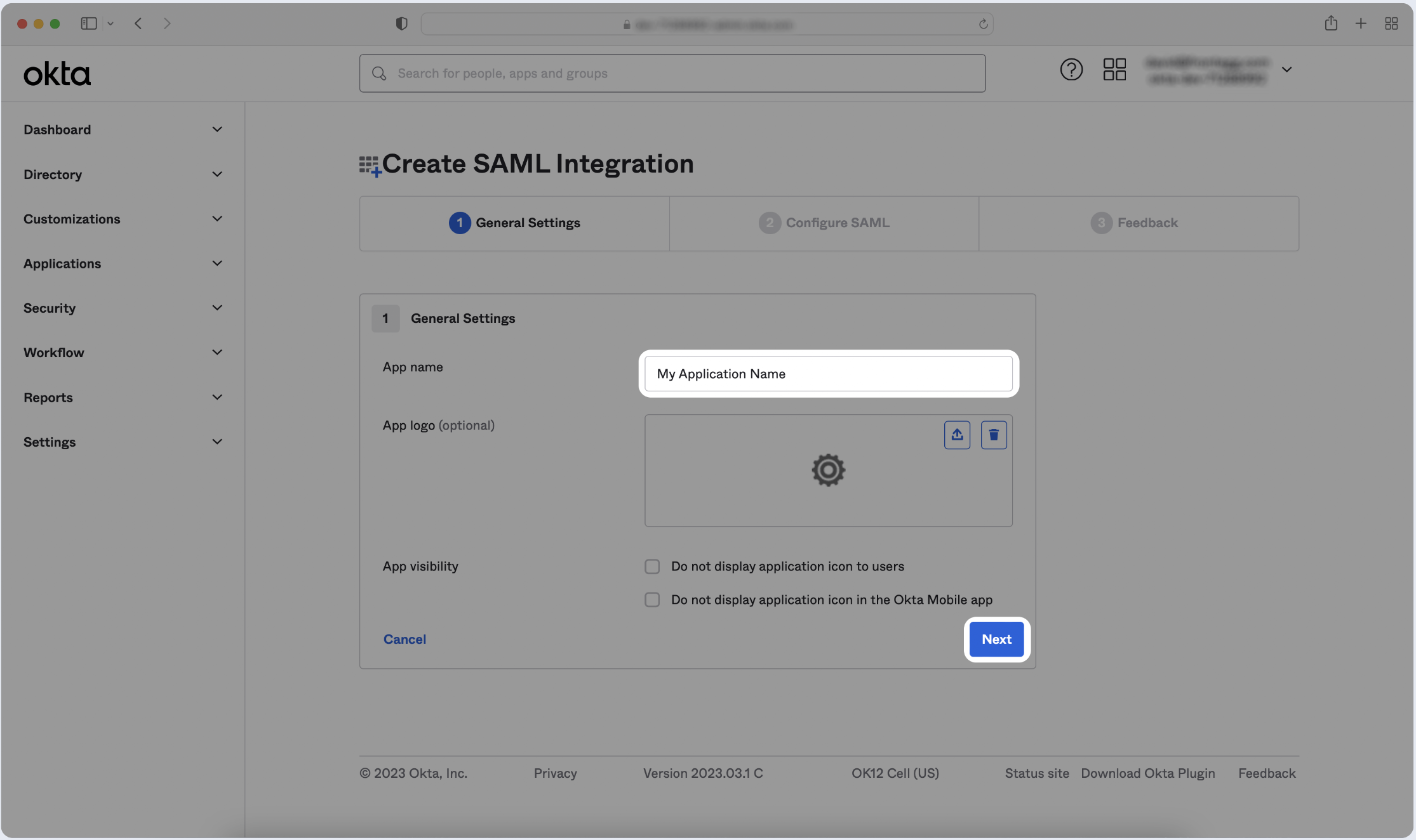 Step 1: Create SAML Application