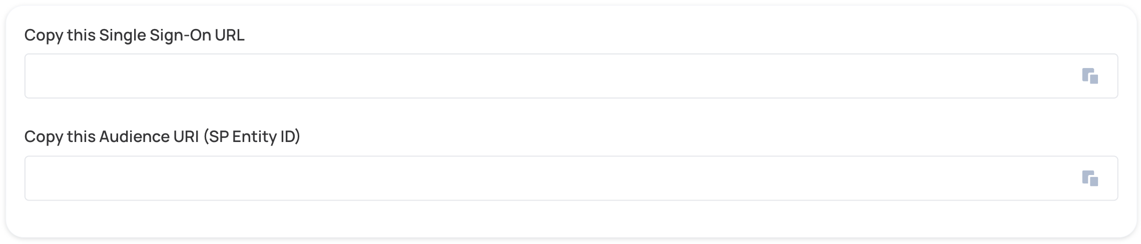Copy and paste the values into the relevant fields in the SAML Settings section.